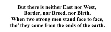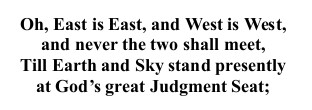 A famous quote from The Ballad of East and West, a 19th century poem by British author Rudard Kipling, keeps coming back into mind. It speaks to the historic clash but potential transcendence of paradigms, obsolete and future. The message holds true despite sexist assumptions, and even though East and West in this case are China and the U.S., not India and England. It starts: