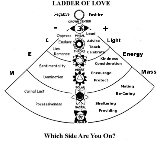 There’s a full scale of ways love expresses, with positive and negative sides at every chakra level. It looks like this: