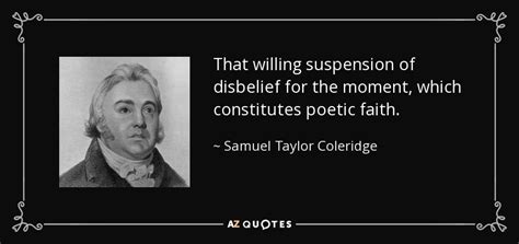 Samuel Taylor Coleridge, English author of imaginative poems including “The Rime of the Ancient Mariner” and “Kubla Khan,” famously advised approaching great fiction with a “willing suspension of disbelief.”