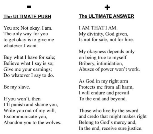 The answer: Alinsky and his clones are functional atheists. Like Goliath, they’ve cut themselves off from the center of the quantum Life Wheel. They may be intimidating or charismatic, but they’re not enlightened. Far from it.