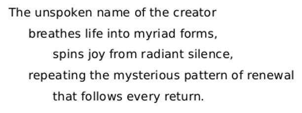 Passage 14 also captures the relationship between the changeless source and its dynamic creations: