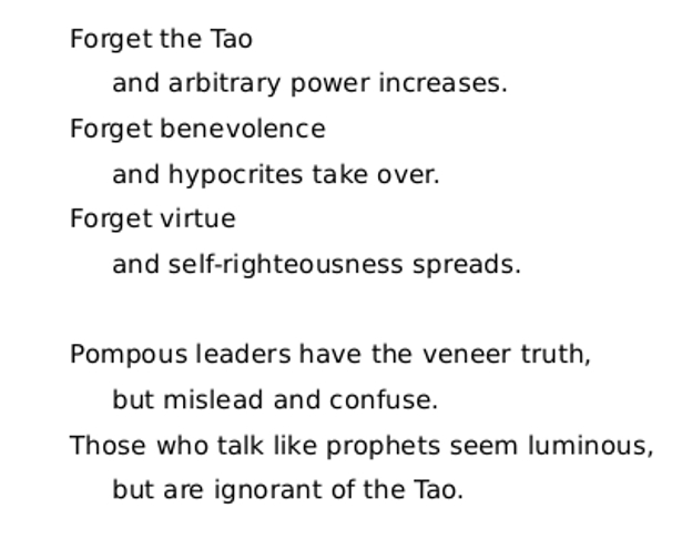 In this, Lao Tze’s sentiments resonate with King Solomon’s Proverbs. For example, we read in Proverbs 29:2, “When the righteous are in authority, the people rejoice: but when the wicked beareth rule, the people mourn.”
