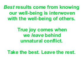 The resonant theme repeats: “Nature provides for all.” For thousands of years, the Book of Change has taught what psychologists now say. Humanity is starved for wisdom. Lacking awareness of our inalienable, inborn okayness, people fall prey to every imaginable disease, addiction and vice. Violence, over-eating, drugs and indiscriminate sex don’t feed the real hunger. Wisdom, self-compassion and human kindness do.