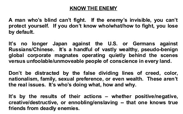 But positive social/political change does not come quick or easy. The passing, obsolete order with its vested interests in monopolistic power — fearing logical retribution for unspeakable crimes against humanity — will use every resource available to censor, resist, obstruct and prevent positive change. Though deadly in the short-term (think inquisitions in Spain), they cannot prevail today. They never have. They never will.